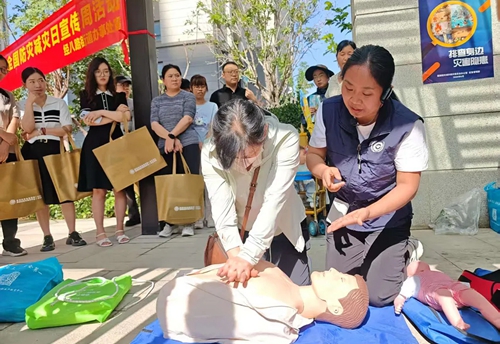 在互動體驗(yàn)環(huán)節(jié),工作人員展示結(jié)繩演練并指導(dǎo)實(shí)操,保障群眾掌握基本結(jié)繩逃生技能?,F(xiàn)場還設(shè)置了仿真人體模型,醫(yī)護(hù)人員指導(dǎo)群眾進(jìn)行心肺復(fù)蘇操作練習(xí),同時(shí)為群眾演示海姆立克急救法操作流程。