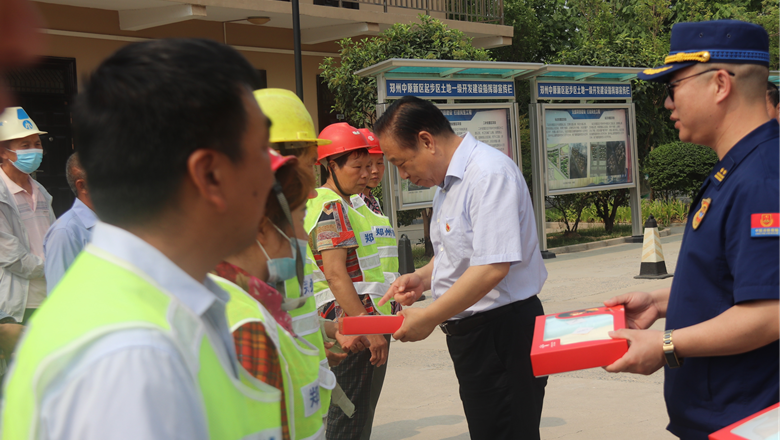進入夏季以來,持續(xù)出現(xiàn)的高溫天氣,給奮戰(zhàn)在建設(shè)一線的施工人員帶來嚴峻考驗,廣大職工不畏酷暑,堅守崗位,辛勤付出。為做好廣大職工的防暑降溫工作,切實保護職工身體健康,6月11日,鄭州市總工會、鄭州市消防救援支隊到鄭州地產(chǎn)集團西流湖公司中原新區(qū)土地一級開發(fā)項目指揮部開展主題為“送清涼、送安全、送健康、促和諧”的夏季送清涼活動。鄭州市一級巡視員、市總工會黨組書記、主席趙新中,市消防救援支隊副支隊長、滅火救援指揮部部長李隆,市總工會副主席宋少丹,鄭州地產(chǎn)集團有限公司監(jiān)事會主席、工會主席李靜波及西流湖公司黨支部書記、董事長、總經(jīng)理吉獻亮等領(lǐng)導(dǎo)出席活動?;顒佑晌髁骱靖笨偨?jīng)理昌磊主持。