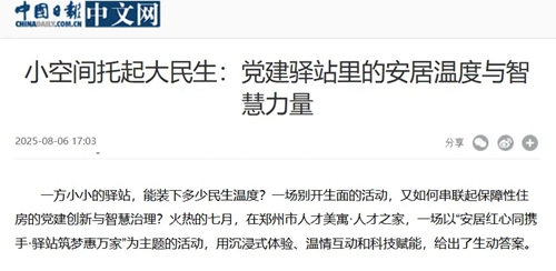 一方小小的驛站,能裝下多少民生溫度?一場(chǎng)別開生面的活動(dòng),又如何串聯(lián)起保障性住房的黨建創(chuàng)新與智慧治理?火熱的七月,在鄭州市人才美寓·人才之家,一場(chǎng)以“安居紅心同攜手·驛站筑夢(mèng)惠萬家”為主題的活動(dòng),用沉浸式體驗(yàn)、溫情互動(dòng)和科技賦能,給出了生動(dòng)答案。