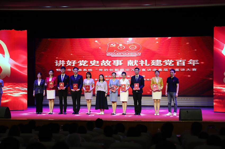 為慶祝中國共產(chǎn)黨成立100周年, 扎實開展黨史學習教育,5月26日上午,鄭州市國資系統(tǒng)“講好黨史故事·獻禮建黨百年”——“黨的創(chuàng)新理論萬場宣講進基層”宣講大賽在市總工會一樓職工大禮堂圓滿落下帷幕。來自市國資系統(tǒng)14家單位選送的15個宣講節(jié)目進入大賽決賽,鄭州地產(chǎn)集團選送的西流湖公司黨支部宣講節(jié)目《百年交響》榮獲三等獎。
