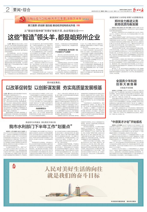 日前召開的市委十二屆四次全會進一步明確:“要持續(xù)深化國企改革,進一步增強國企可持續(xù)發(fā)展能力,打造鄭州高質量發(fā)展的有力支撐。”為深入貫徹落實市委全會精神,鄭州日報社聯合市國資委推出“強支撐 擔使命 挑大梁 快發(fā)展”國家中心城市現代化建設中的國企力量系列報道,透過優(yōu)秀國資國企負責人的視角,洞見我市國企改革的方向和成果,展現國資國企在我市經濟“跑出加速度、確保高質量”中的基礎性、保障性、先導性作用與貢獻,彰顯使命與擔當。