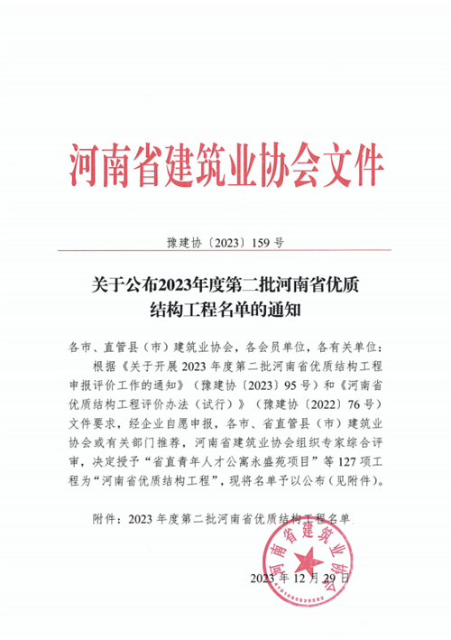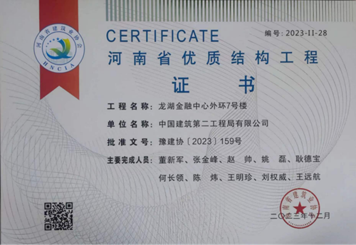 鄭州城發(fā)集團(tuán)兩項(xiàng)工程榮獲“2023年度河南省優(yōu)質(zhì)結(jié)構(gòu)工程”獎(jiǎng)