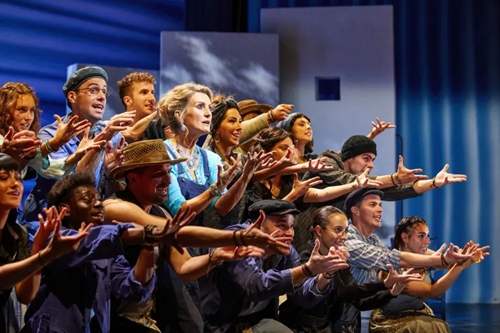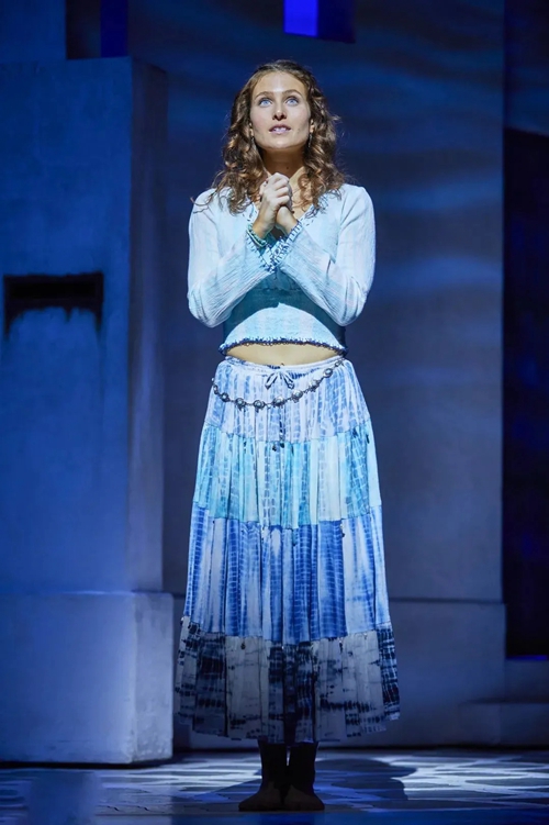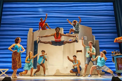 迪斯科風(fēng)格在《媽媽咪呀!》中無處不在。從音樂、舞蹈,到服裝設(shè)計(jì),都給人以舞廳“蹦迪”的動感與歡樂體驗(yàn)。而ABBA 樂隊(duì)熱情洋溢的曲風(fēng),轉(zhuǎn)化成希臘島嶼的陽光、沙灘,所有的金曲與熱舞也洋溢著地中海燦爛陽光下的積極與樂觀,猶如一首生命的贊歌。正如《星期日快報(bào)》的評價(jià):