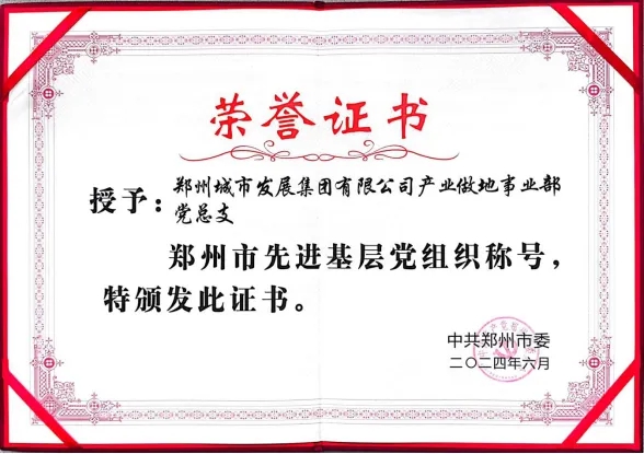 喜報(bào)丨鄭州城發(fā)集團(tuán)產(chǎn)業(yè)做地事業(yè)部黨總支被授予“鄭州市先進(jìn)基層黨組織”榮譽(yù)稱號