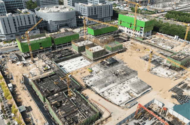 五月的城發(fā)·高新生物經濟產業(yè)園,塔吊繁忙運轉、機械設備轟鳴不斷,工人們有條不紊地進行施工作業(yè),項目建設現(xiàn)場到處一派熱火朝天的繁忙景象。其中,項目一期的主樓工程基本完成,室外配套管網(wǎng)、景觀正在施工中;項目三期的土方、樁基已完成,正在交叉推進正負零和主體施工,部分樓棟已施工至六層。