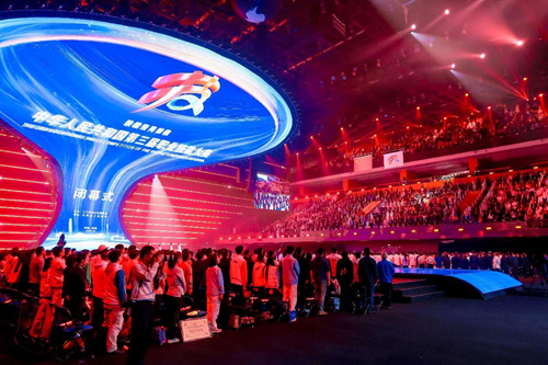 華燈璀璨,掌聲如潮。9月23日晚,當348名獲獎選手高舉隊旗與獎章,當大賽會旗在璀璨的舞臺上完成交接傳遞,當良渚文化和人形機器人在現(xiàn)場8000余名觀眾的歡呼聲中共舞……中華人民共和國第三屆職業(yè)技能大賽閉幕式在鄭州奧體中心體育館完美落幕!