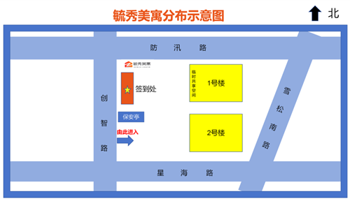 簽到處位于西門入口保安亭北側