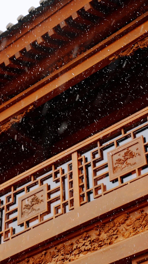 飛檐翹角綴滿蓬松雪團