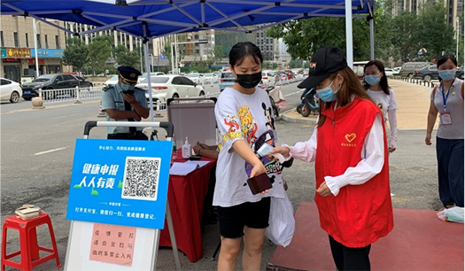 疫情防控刻不容緩。志愿者們首先仔細(xì)詢(xún)問(wèn)了社區(qū)值守人員防疫工作流程及細(xì)節(jié),認(rèn)真記錄社區(qū)防疫的步驟和相關(guān)要求。志愿者們配合社區(qū)工作人員提醒大家正確佩戴口罩,對(duì)進(jìn)出社區(qū)人員進(jìn)行健康掃碼和體溫測(cè)量,一個(gè)個(gè)忙碌的身影為社區(qū)抗疫一線筑牢“防護(hù)墻”。